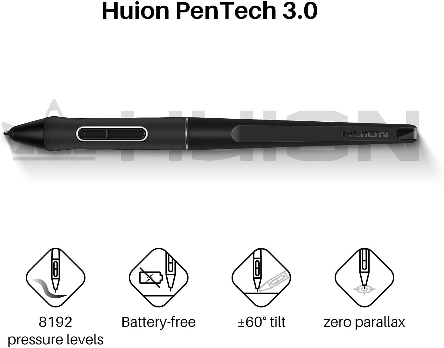 - Advanced Pen performance: Featuring with Huion PenTech 3.0, the battery-free pen PW517 enables responsive and accurate pen performance with 8192 levels of pressure sensitivity, ±60° tilt recognition, virtually lag-free tracking. And the etched glass screen provides a natural, pen-on-paper feel.
