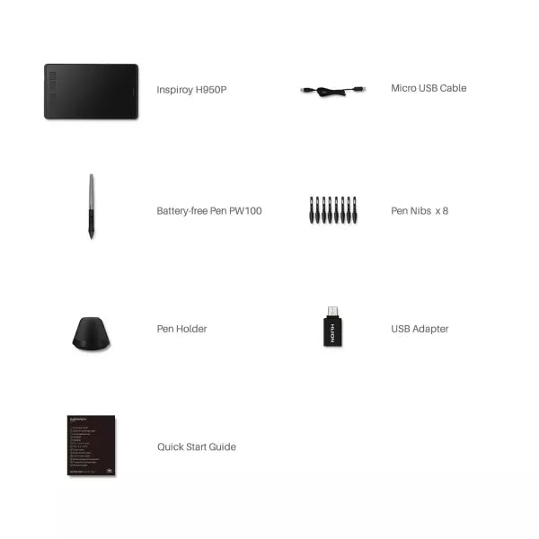 Inspiroy H950P - Android Supported, 8.7 x 5.4'', ±60° Tilt Support, 8192 Levels Pressure, Battery-free Pen, 8 Press Keys.