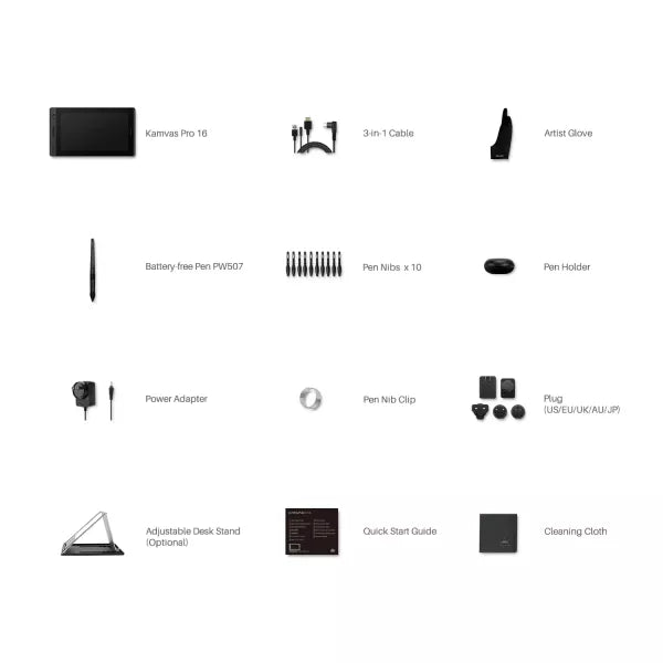 Kamvas Pro 16 - 15.6 inch Screen, Full-lamination, Anti-Glare Glass, ±60° Tilt Support, 3-in-1 Cable.