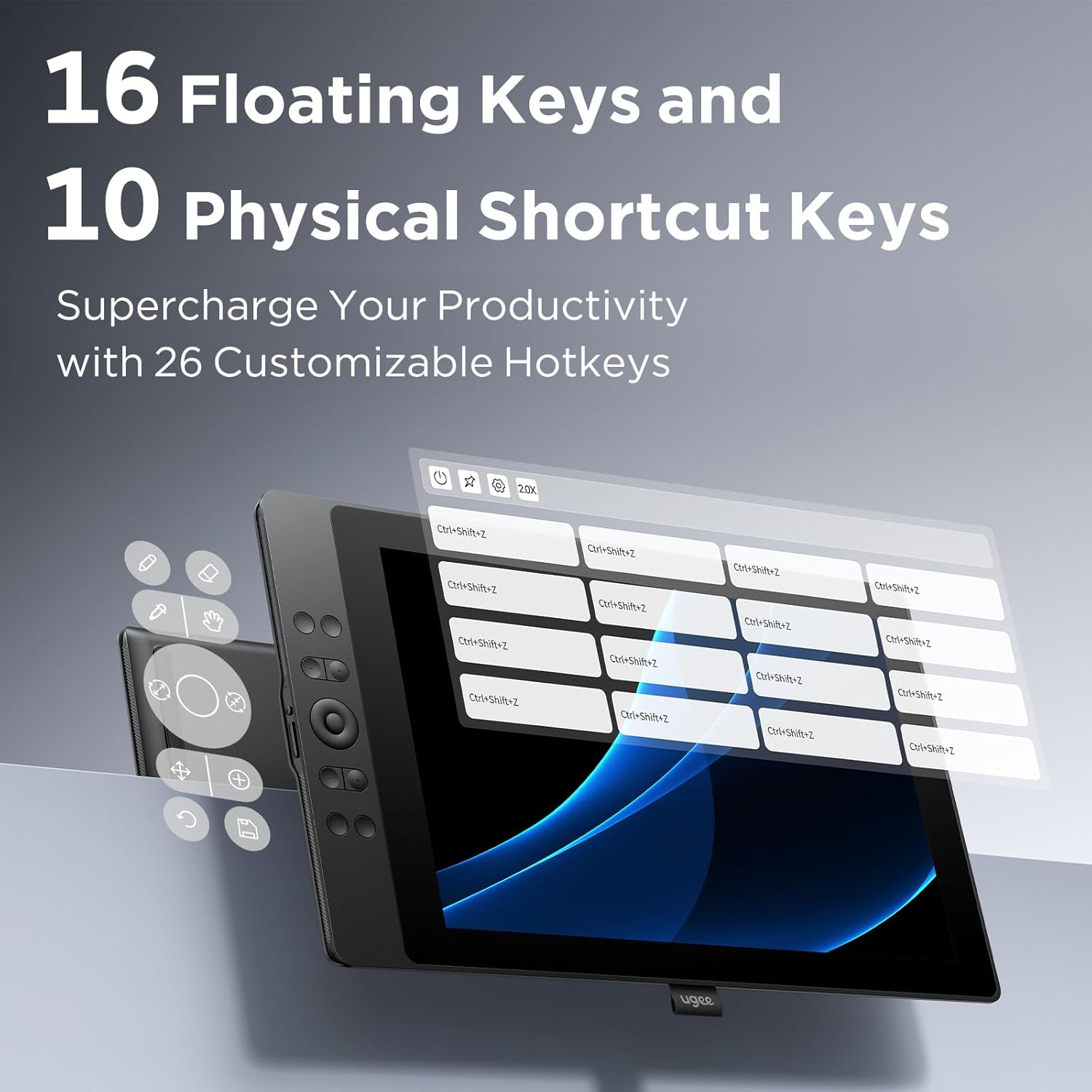- 143% sRGB Color Gamut:143% sRGB ultra-high color gamut, the UE16 drawing tablets with screen showcases an exceptional ability to reproduce 16.7 million colors with its 8-bit color depth. This precision and finesse ensure an accurate and vivid portrayal