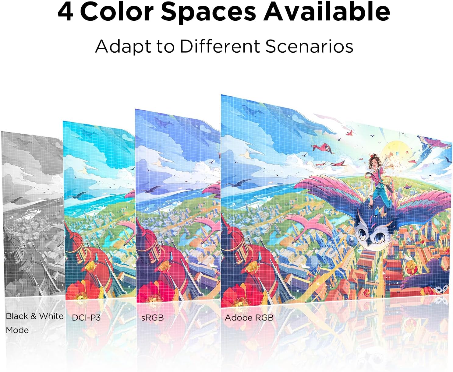 - Four Color Spaces:With the options of sRGB, Adobe RGB, DCI-P3, and Black & White mode, the UE16 drawing tablet allows you to seamlessly transition between different visual experiences whether you're drawing, designing, or simply reading