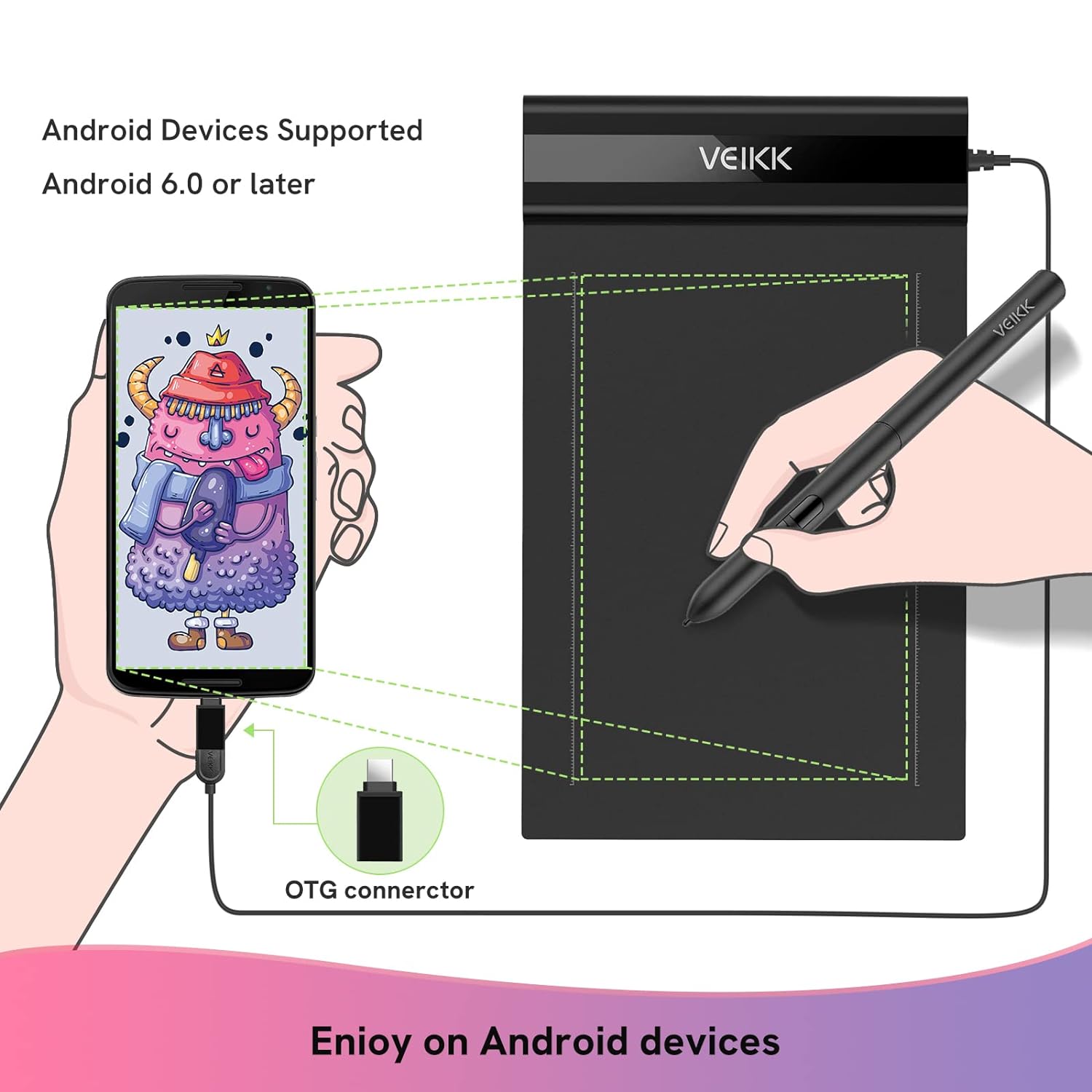 Choose Your Favorite Platform: VEIKK S640 pen tablet is compatible with Windows 11/10/8/7, Chrome OS 88 or later and Mac OS 10.12 or later, Linux and Android 6.0 or above phone (except Samsung) via the OTG connector provided, you can choose the way you prefer to work, and express yourself on social media, unleash your creativity wherever and whenever you want.